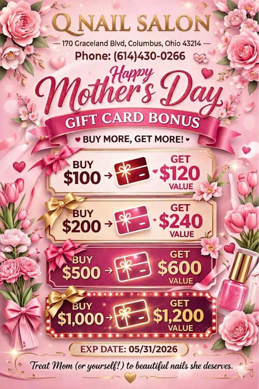 Q Nails is a premium nail salon located at 170 Graceland blvd COLUMBUS, OH 43214, Q Nail Graceland offers the ultimate in pampering and restoring your beauty with our whole-hearted, careful & professional staff.
